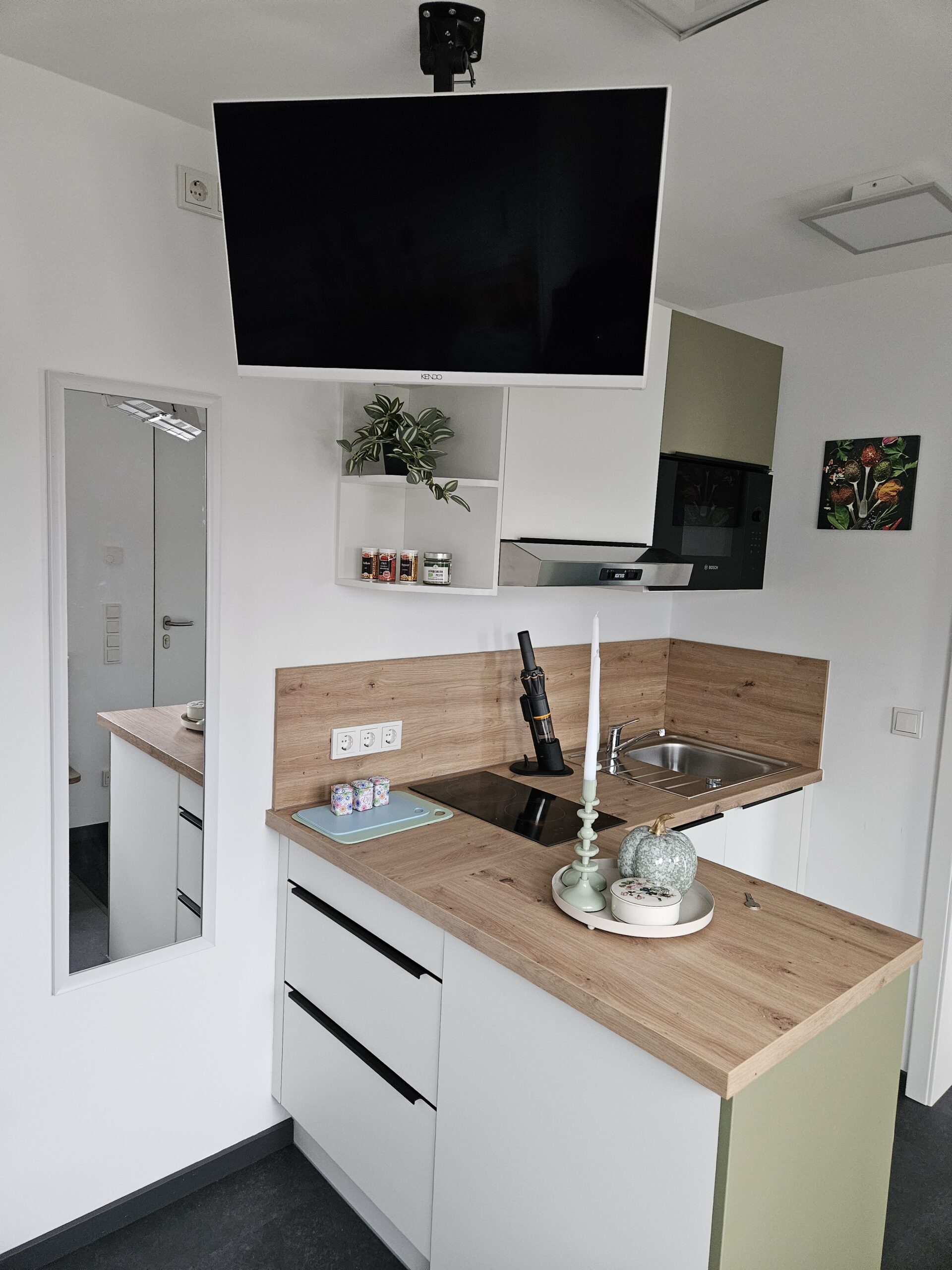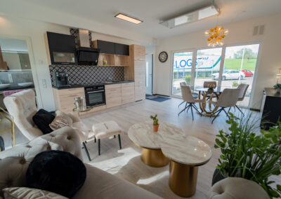Tiny Short ist das kleinste Haus von WST. Es besteht aus einer Raumzelle. Es werden auf kleinstem Raum alle Wohnfunktionen für Minimalisten geboten. Tiny Short verfügt über ein Duschbad mit Waschmaschine und Trockner und einem Wohn-Ess-Bereich mit komplett ausgestatteter Einbauküche. Ein besonderes High-Light ist das versenkbare Sofa, welches sich in ein komfortables Bett mit Lattenrost und 200mm Siebenzonen-Matratze verwandelt (optional). Tiny Short eignet sich als Ferienhaus oder ausgelagertes Gästezimmer.